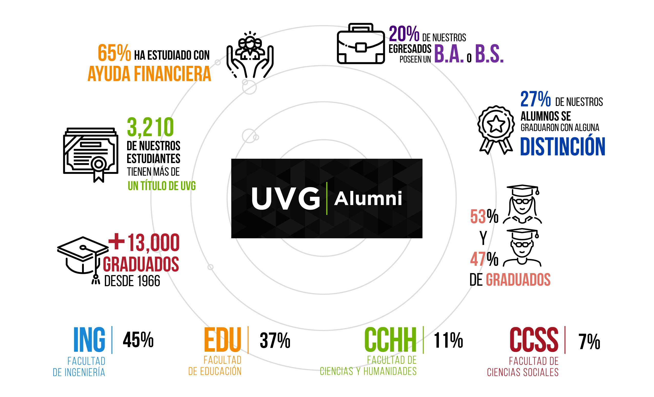 - Correo alumni UVG: cuenta de correo electrónico que te identifica como egresado UVG, con respaldo institucional.