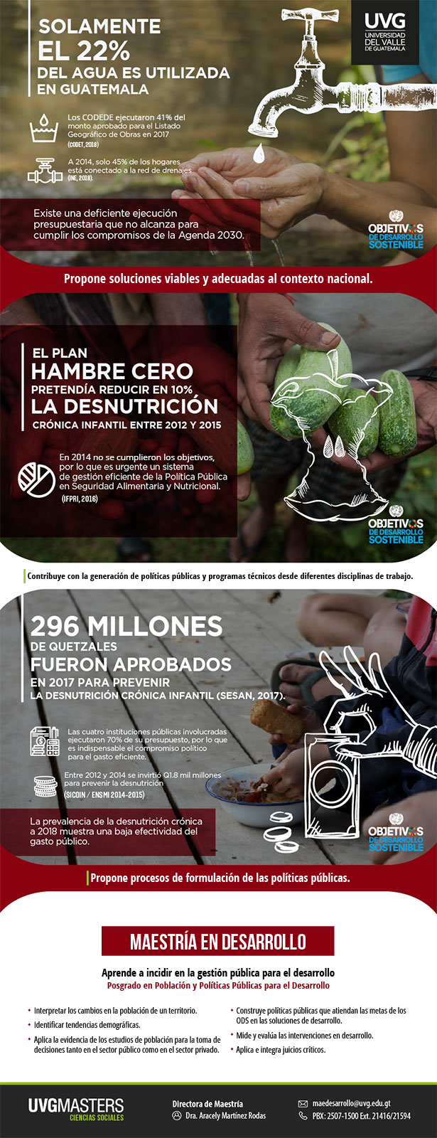 Los y las egresadas de los posgrados y maestrías en desarrollo de la Universidad del Valle de Guatemala son profesionales que cuentan con herramientas teóricas y prácticas para medir el cumplimiento de indicadores a corto, mediano y largo plazo, además del grado de contribución de una política, programa o proyecto. Asimismo, de planificar, implementar, monitorear y evaluar las intervenciones que amplían las capacidades de las personas, a través de metodologías apropiadas que generan evidencia para la toma de decisiones en gobierno, ONG, organismos internacionales y otros ámbitos.